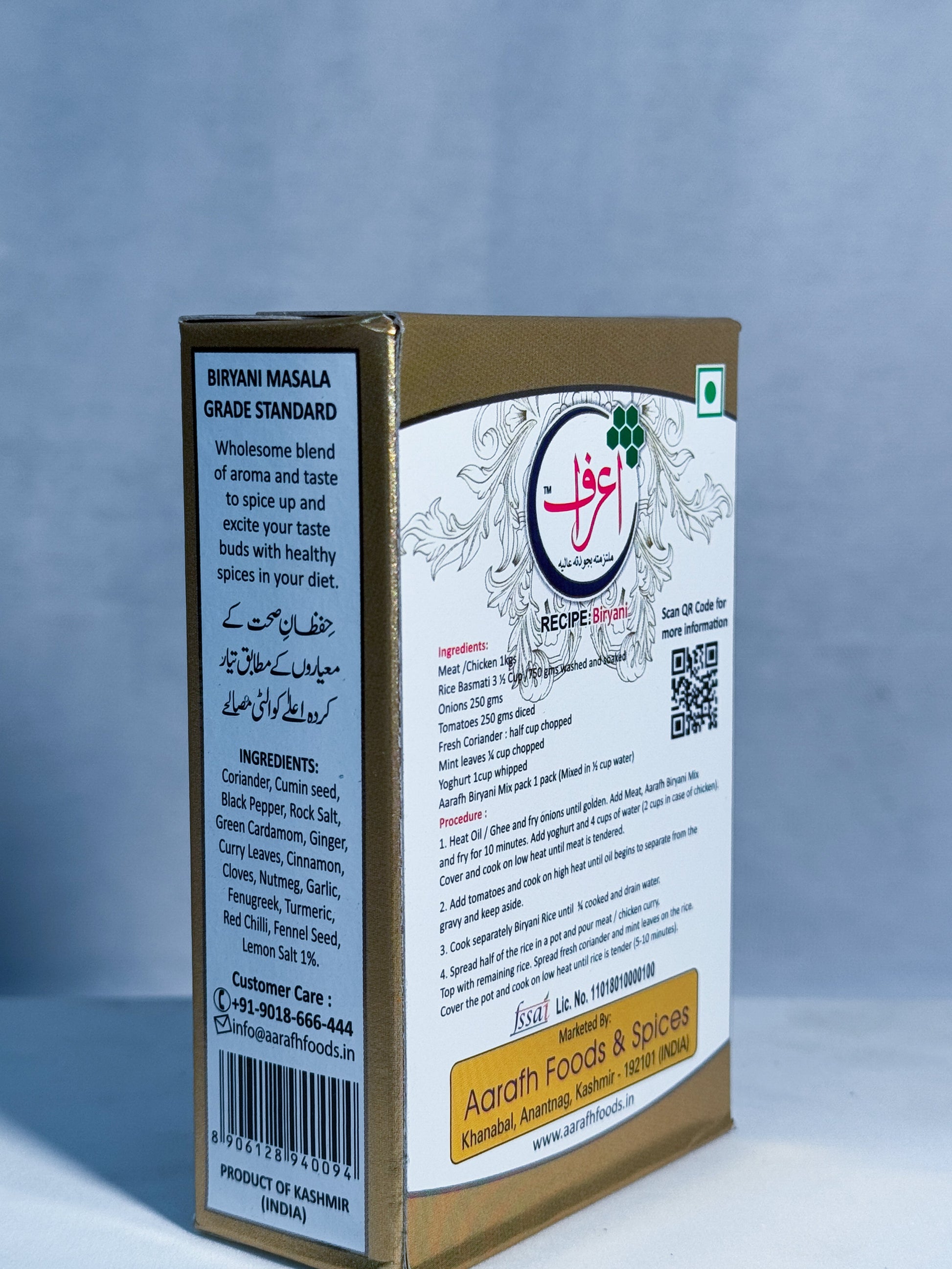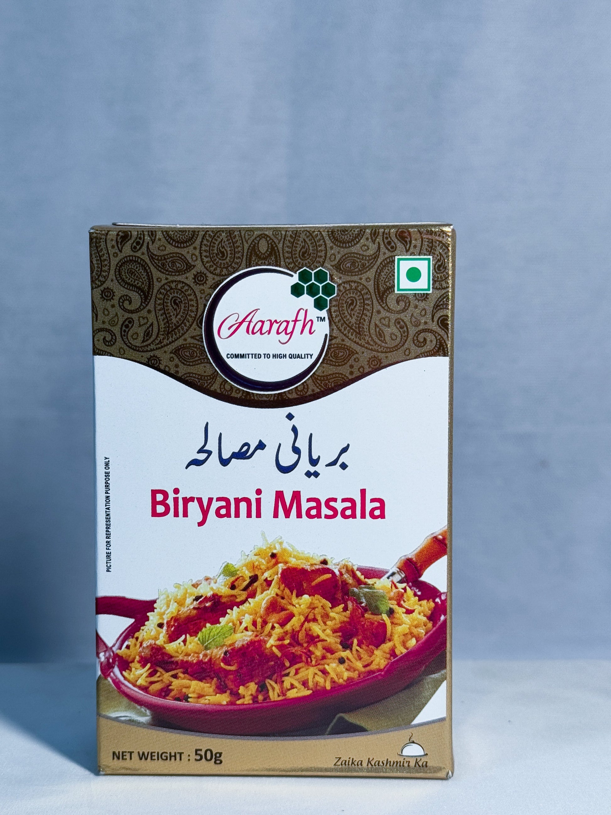 Experience the authentic flavors of Kashmiri cuisine with our Biryani Masala. Made with handpicked spices, this blend provides a perfect balance of heat and sweetness, elevating any dish to a new level. Infuse your meals with the rich and aromatic taste of Kashmiri Biryani Masala.