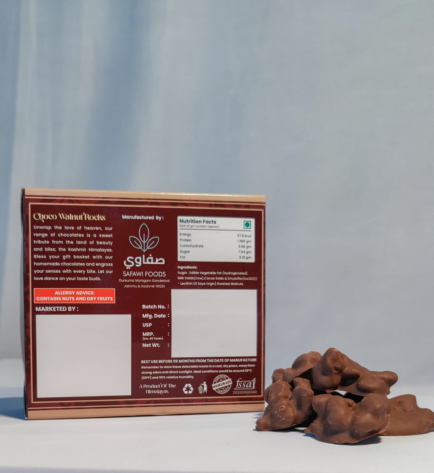 Discover the rich fusion of Belgian chocolate and premium Kashmiri walnuts in our Choco Walnut bites, handcrafted to capture the essence of nature's bounty. Sourced from the lush orchards of Kashmir and enrobed in smooth, ethically sourced chocolate, each piece offers a satisfying crunch followed by a velvety melt—perfect for mindful snacking or gifting to chocolate lovers.