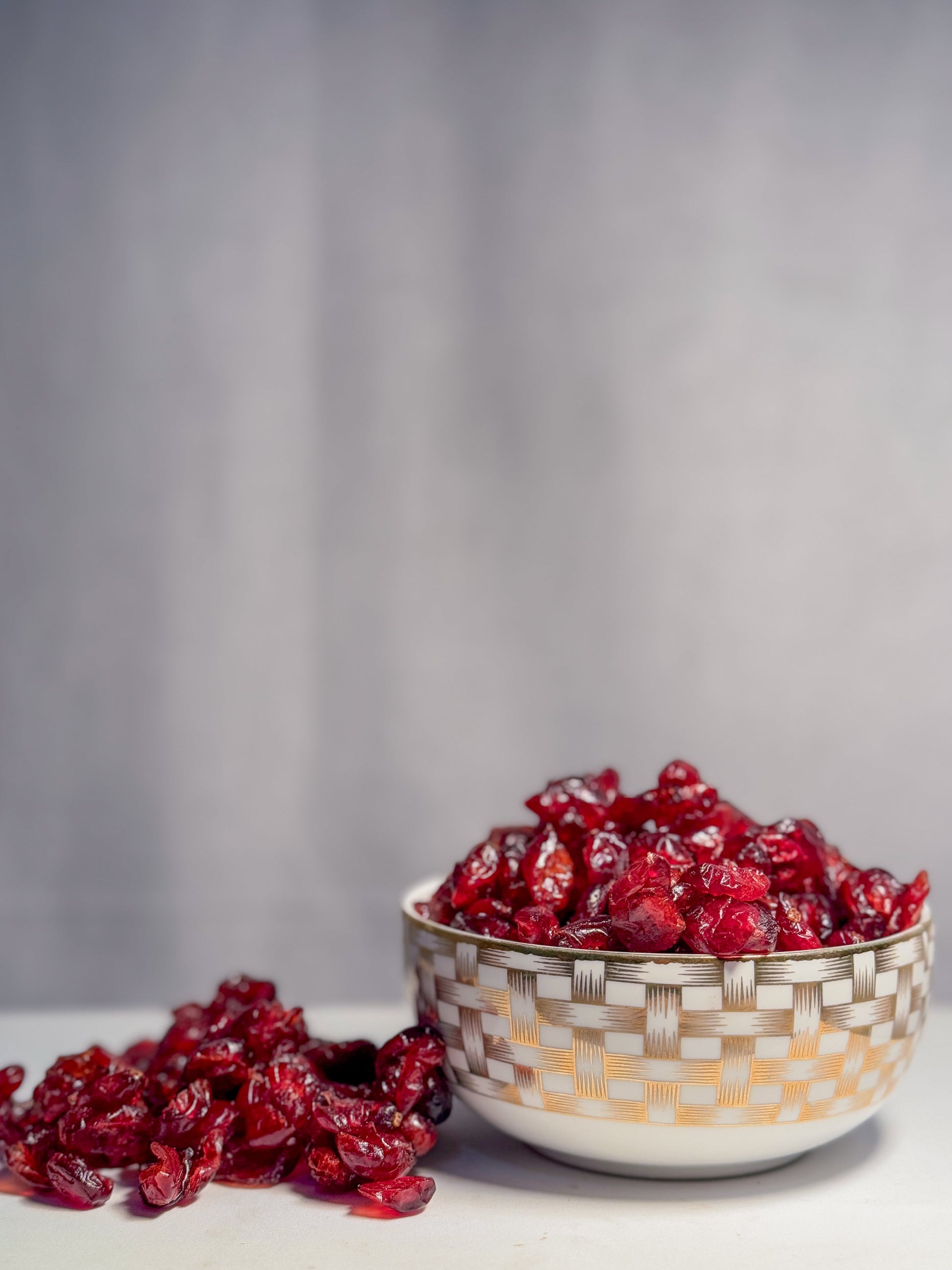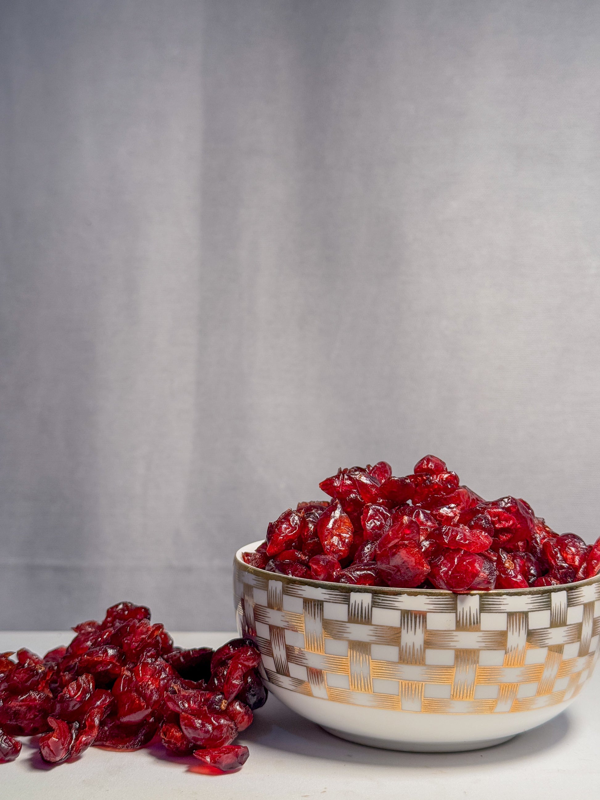 Kashmiri Naturals Cranberries are carefully selected and naturally dried to preserve their rich flavor and vibrant color. Known for their tart yet sweet taste, these cranberries make a versatile addition to both sweet and savory recipes. Perfect as a quick snack, a topping for cereals, salads, or baked goods, they bring a burst of natural fruitiness to your everyday diet. Our cranberries are hygienically packed to maintain freshness, ensuring you get premium quality in every bite.