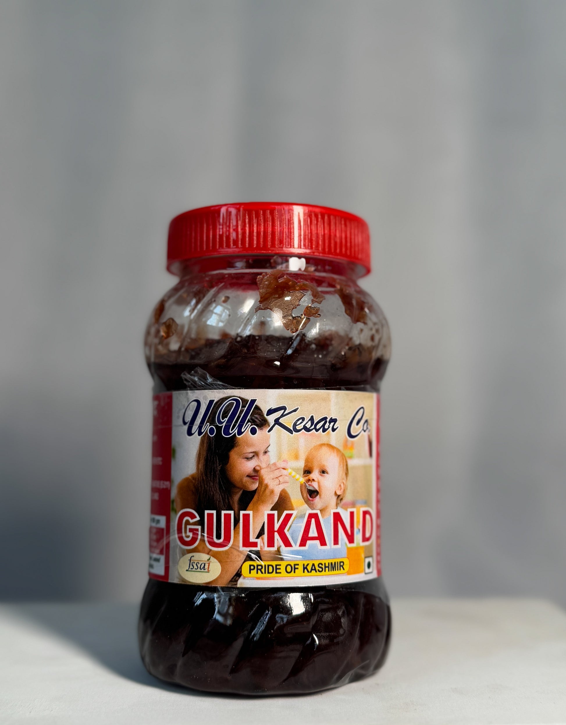 Gulkand is a sweet and aromatic rose petal preserve that's commonly used in Ayurvedic and Persian cuisine. Made from rose petals and sugar, it offers a natural source of antioxidants and provides a gentle cooling effect on the body. Enjoy Gulkand on its own or use it as a flavorful addition to desserts and drinks.